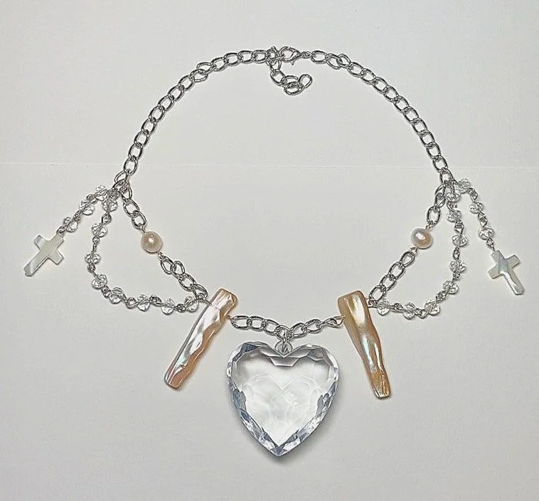 Sold Out › heart made of glass Image 1 of 2 Image 2 of 2 heart made of glass Sale Price: $20.00 Original Price: $28.00 sold out necklace handmade with thrifted heart pendant (not made of glass lol), genuine pearls, & chain design sold out Added! necklace handmade with thrifted heart pendant (not made of glass lol), genuine pearls, & chain design